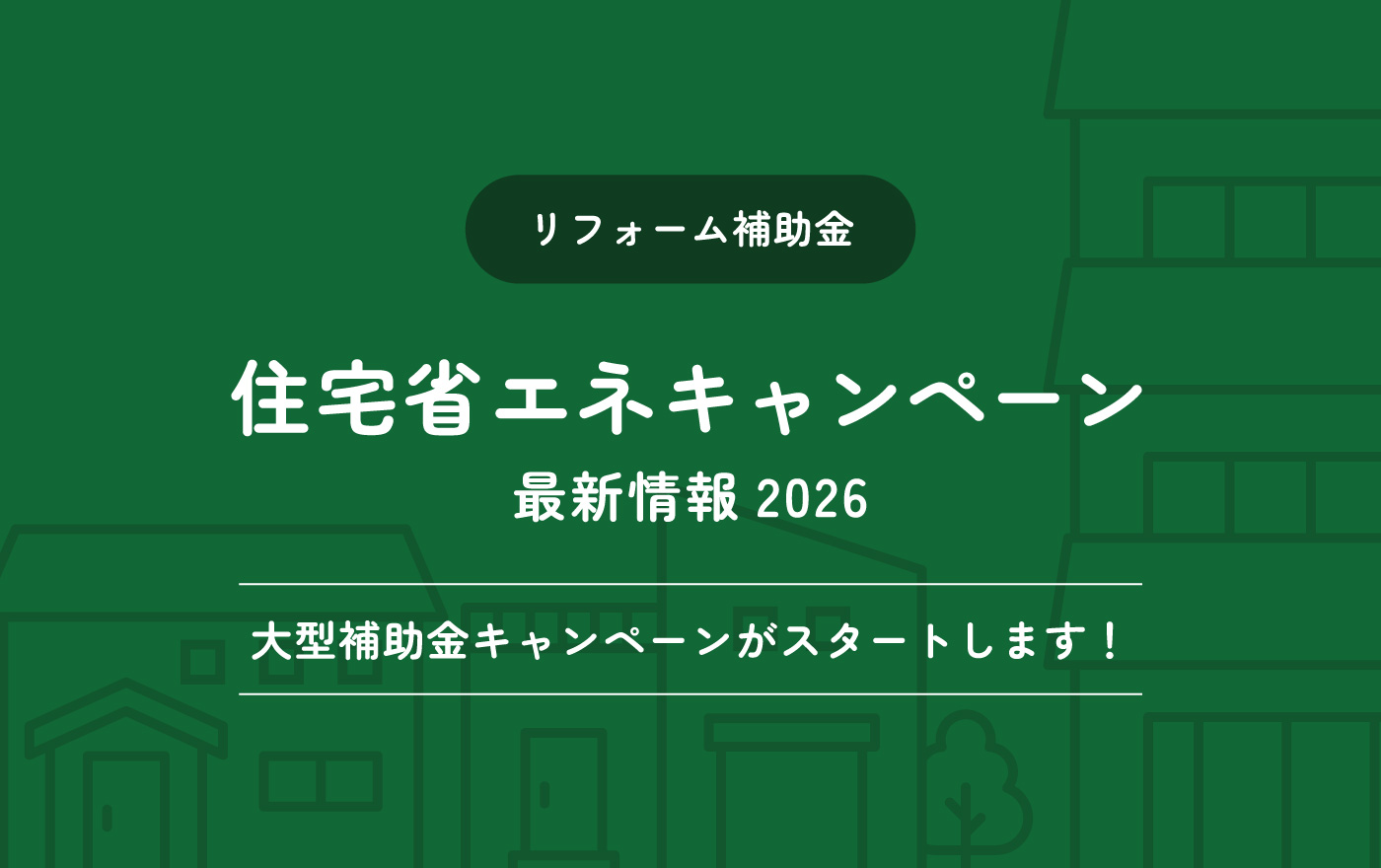 2026年の住宅省エネキャンペーンの実施が発表され、今年もお得にリフォームできるチャンスです! 昨年から条件や補助額など変更している箇所もあり、詳細を十分ご確認いただくことをおすすめいたします。 申請…