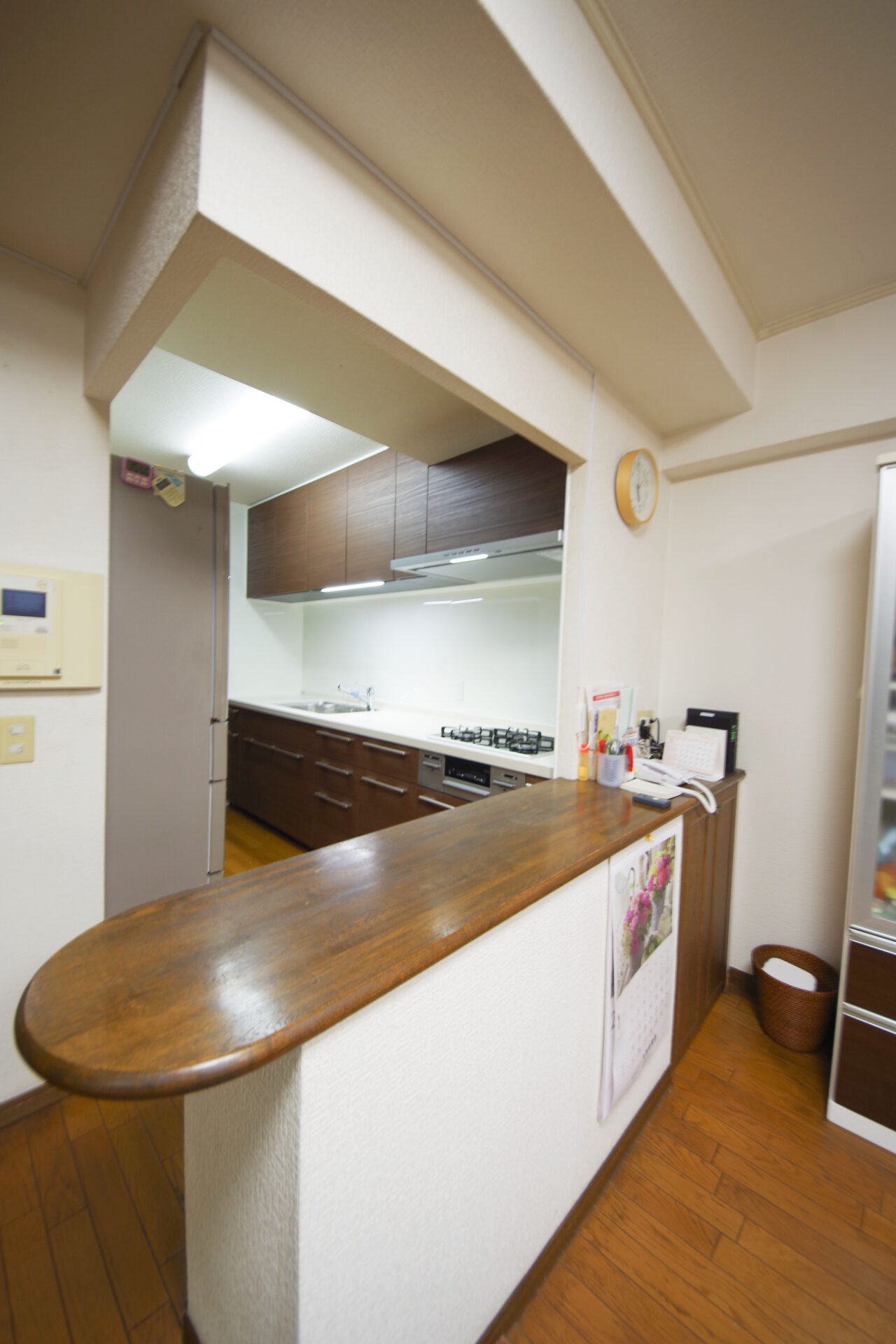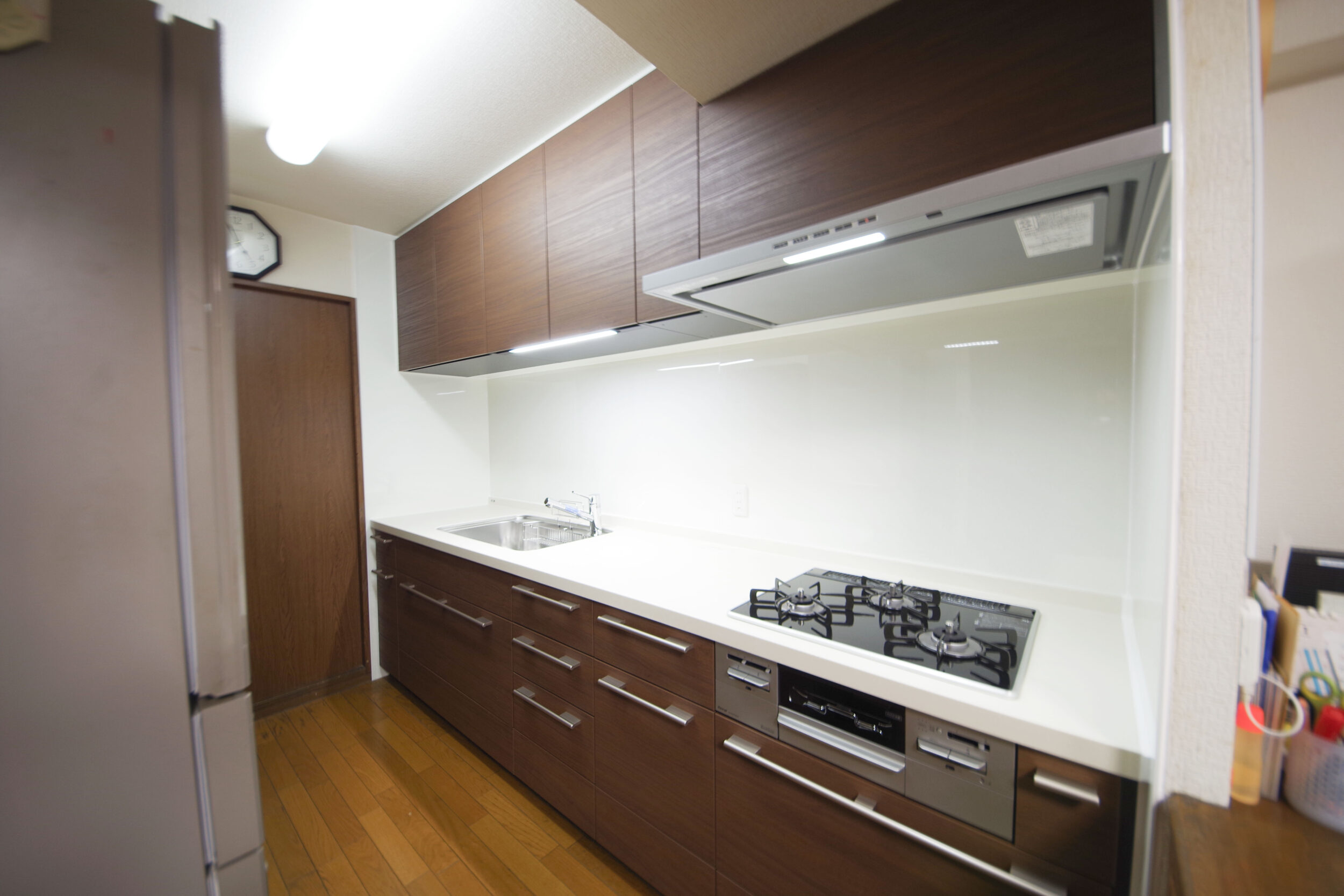 マンションのキッチンを交換いたしました。キッチンの間口が298㎝と大型のキッチンで、ゆったりとしたワークスペースやたっぷり収納が確保でき、毎日の調理や片付けがスムーズに行える空間に仕上がりました。