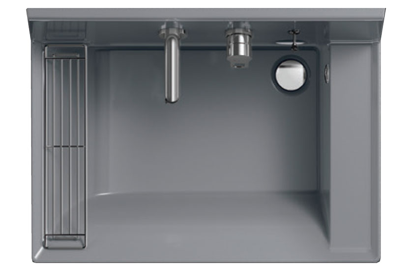 - 排水口のお掃除を簡単にする「新てまなし排水口」。髪・ゴミをキャッチしつつ、水も通しやすい形状です。