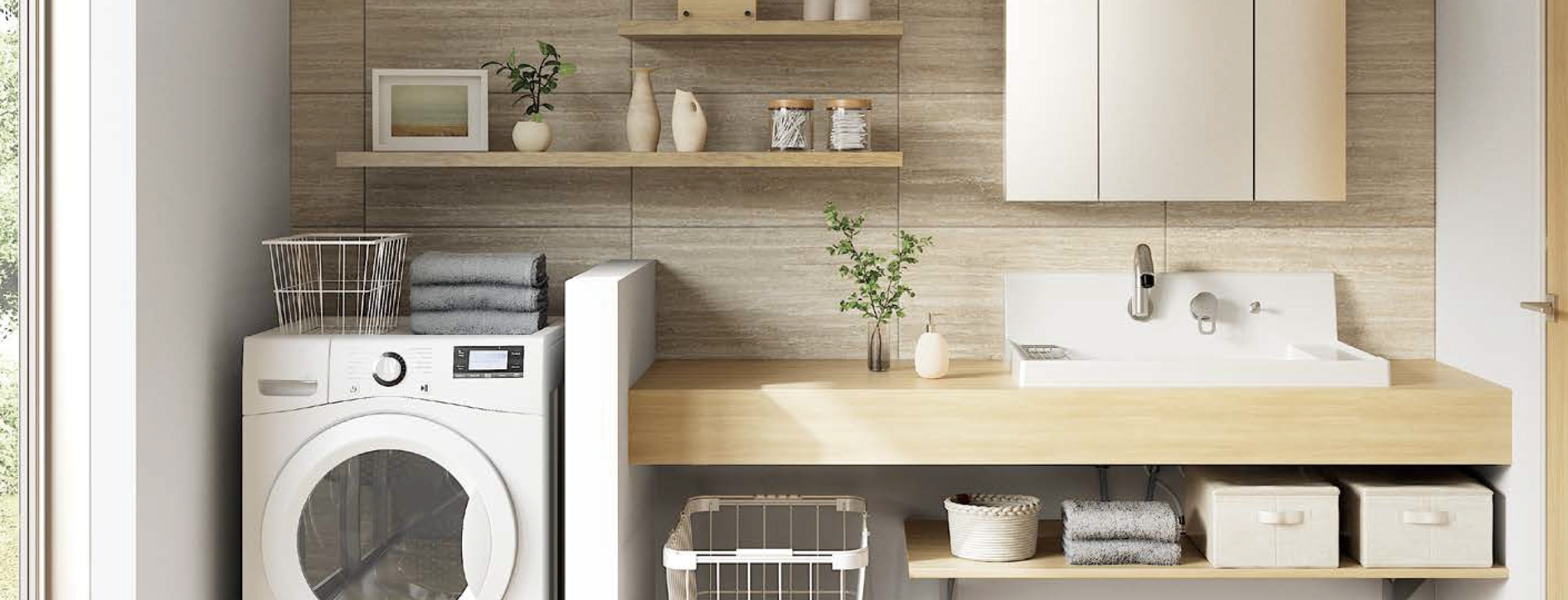 11色のカウンターと3サイズ3色の洗面ボウルを組み合わせてスタイリッシュで使いやすいカウンター洗面に。豊富なカラーで、洗面空間を自分らしくアレンジできます。