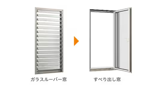 洗面所やトイレなどでよく使われている「ガラスルーバー窓」のすきま風問題も、「すべり出し窓」に取替えることで解決。すきま風をシャットアウトできます。