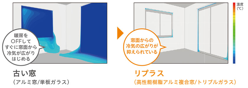 断熱性能が低い古い窓を、高断熱窓に取替えることで、外の寒さ・暑さの侵入を抑え、暖冷房効率もグッとUP。冬でも夏でも快適な室内をキープできます。