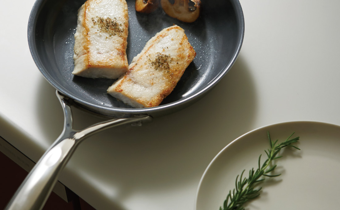 熱や衝撃に強い素材のため、350℃のフライパンを10分放置しても、重さ198gの鋼球を1mの高さから落としても、割れたり変色したりしにくい特性を備えています。(当社実験結果)