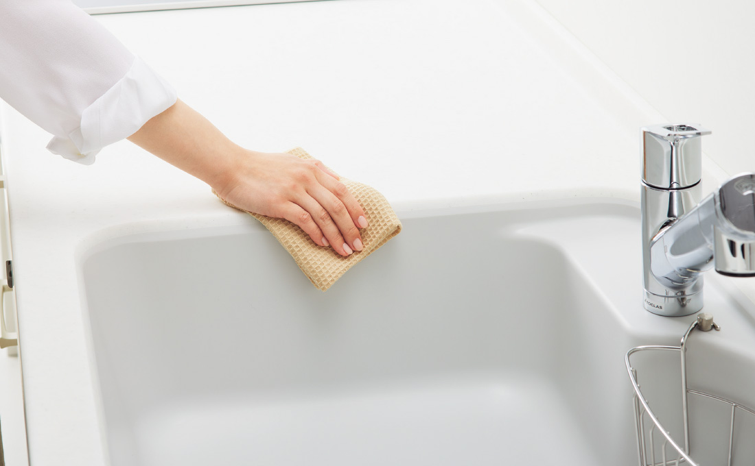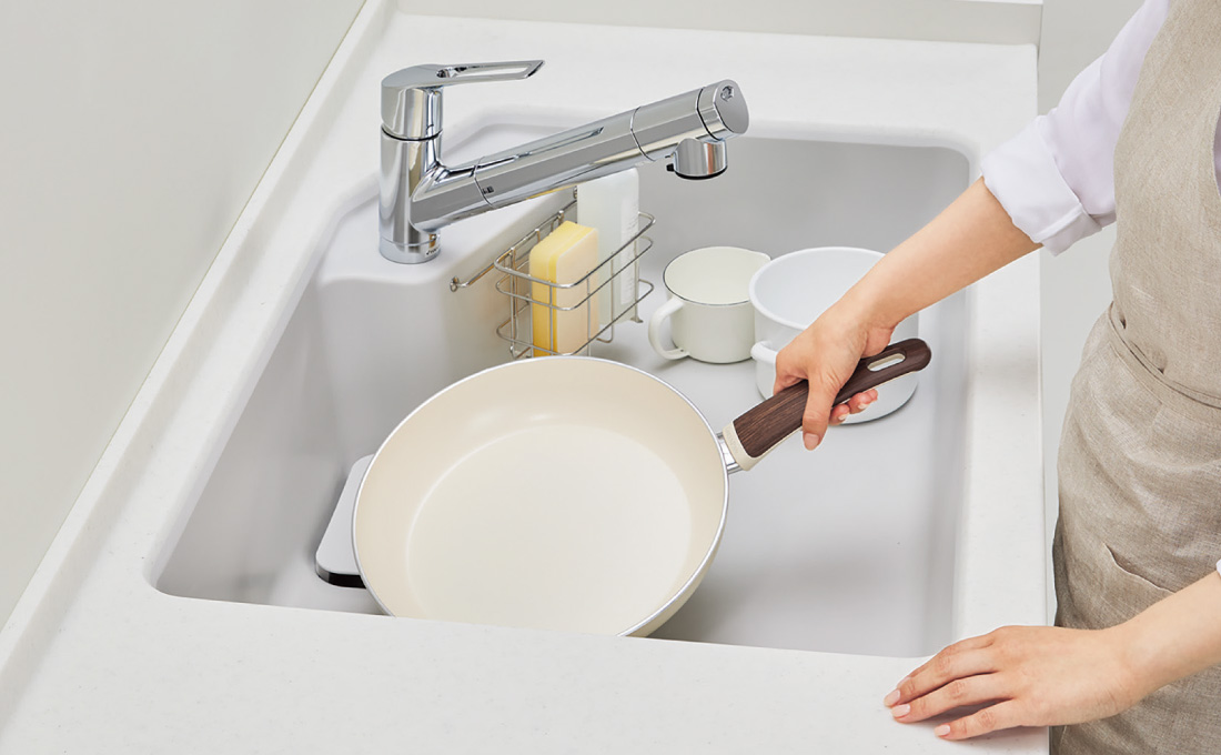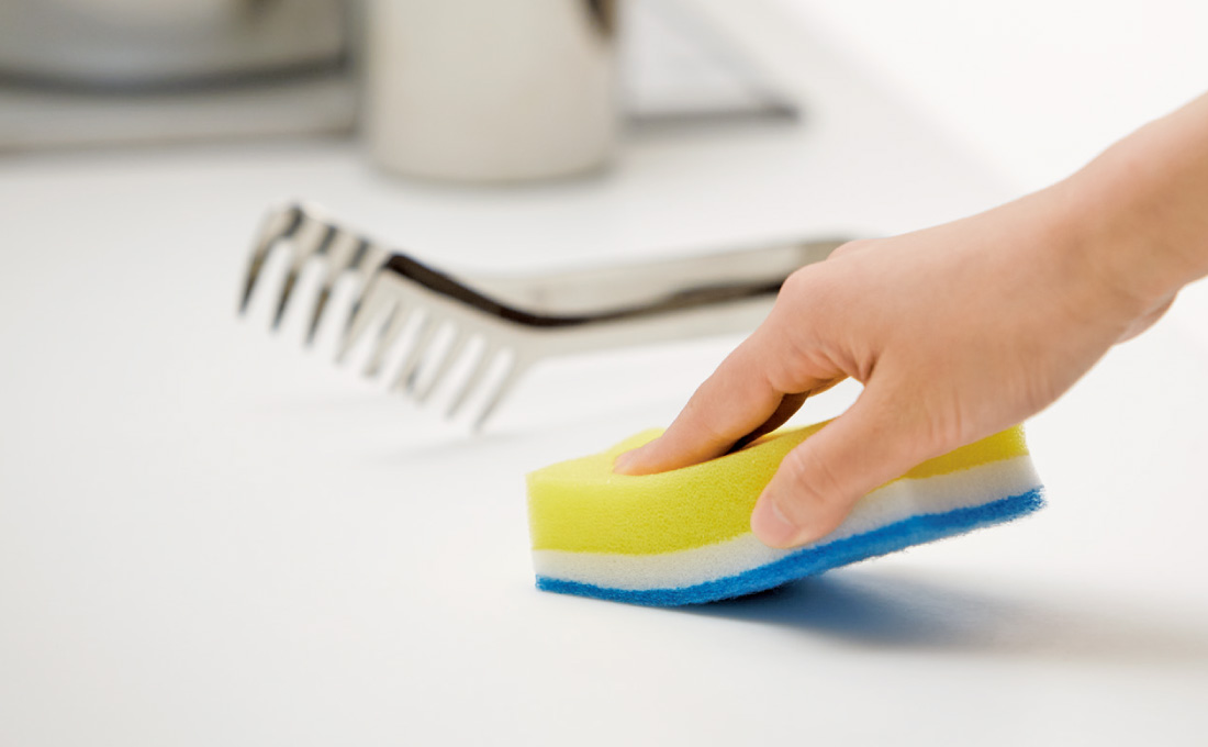 調味料などの汚れが染み込みにくいので、毎日のお手入れは、水拭きだけで清潔さをキープ。油汚れも中性洗剤でさっと落とせます。