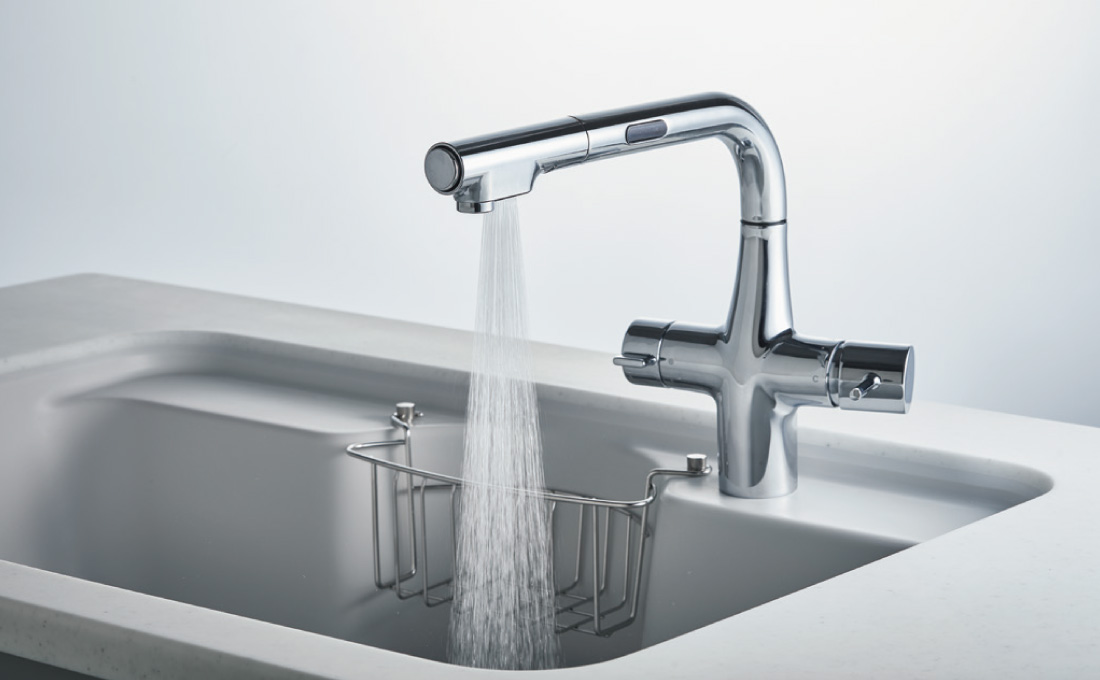ハンドセンサーで節水も楽々、レバー操作でたっぷりの浄水がいつでも使えます。