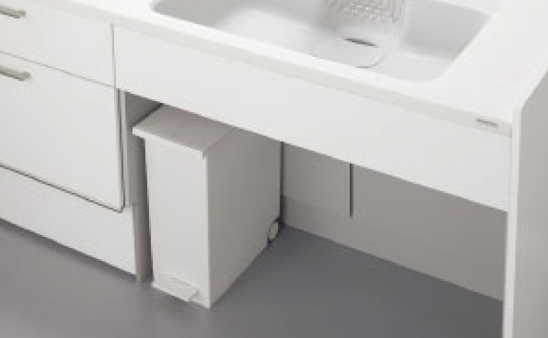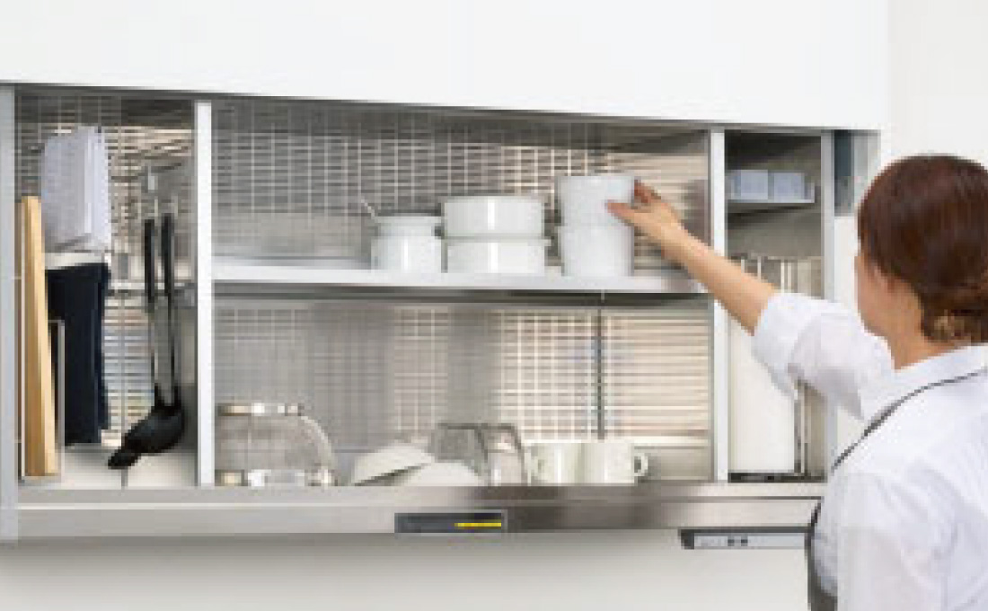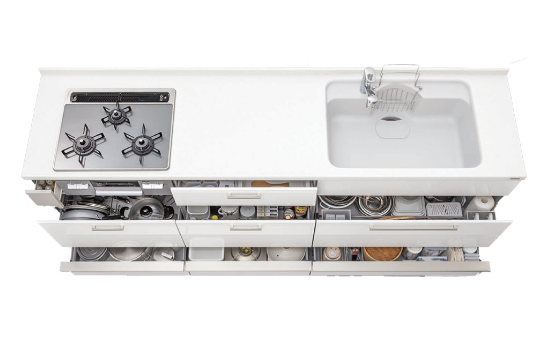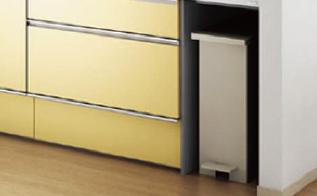 ゴミ箱やストック類もきれいに収納「フルオープンキャビネット」