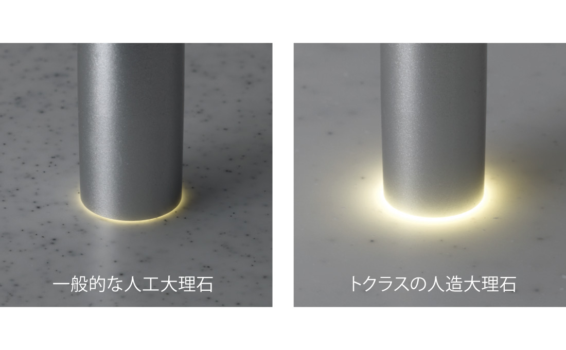 単一素材を均質で高密度に仕上げた人造大理石のクラストンは、質感がとてもなめらか。