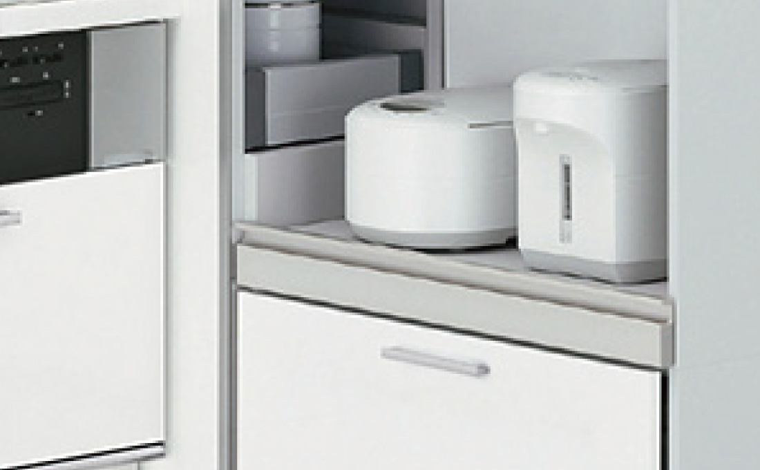 キッチン横に、使用頻度の高い家電を収納。キッチンワークがもっと効率的に。