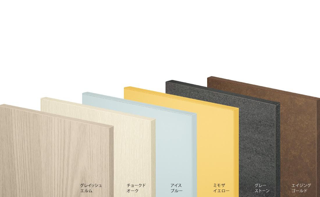 豊富なカラーバリエーションの扉をご用意しました。多彩な扉と上質なカウンターを組み合わせて、居心地がよい空間をつくることができます。